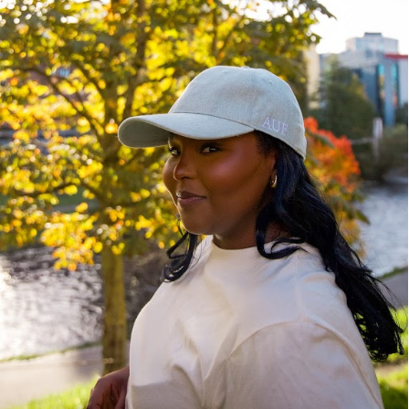 Cap i lys denim med "AUF" bordert på siden.